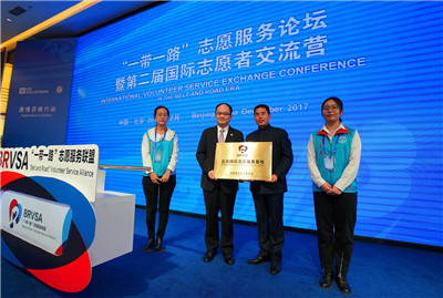 闭幕式上,毛晓刚同志发布了启动建立“一带一路”志愿服务倡议,奥利维尔?亚当(Olivier Adam)、熊卓同志与来自各地的志愿服务组织负责人代表共同启动建立“一带一路”志愿服务联盟,熊卓同志为北京第二外国语学院授予“北京国际志愿服务基地”牌匾。
