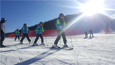 12日,在来自崇礼一中滑雪教练的带领下,营员们走进滑雪场,学习双板滑雪,体验冬季运动项目。