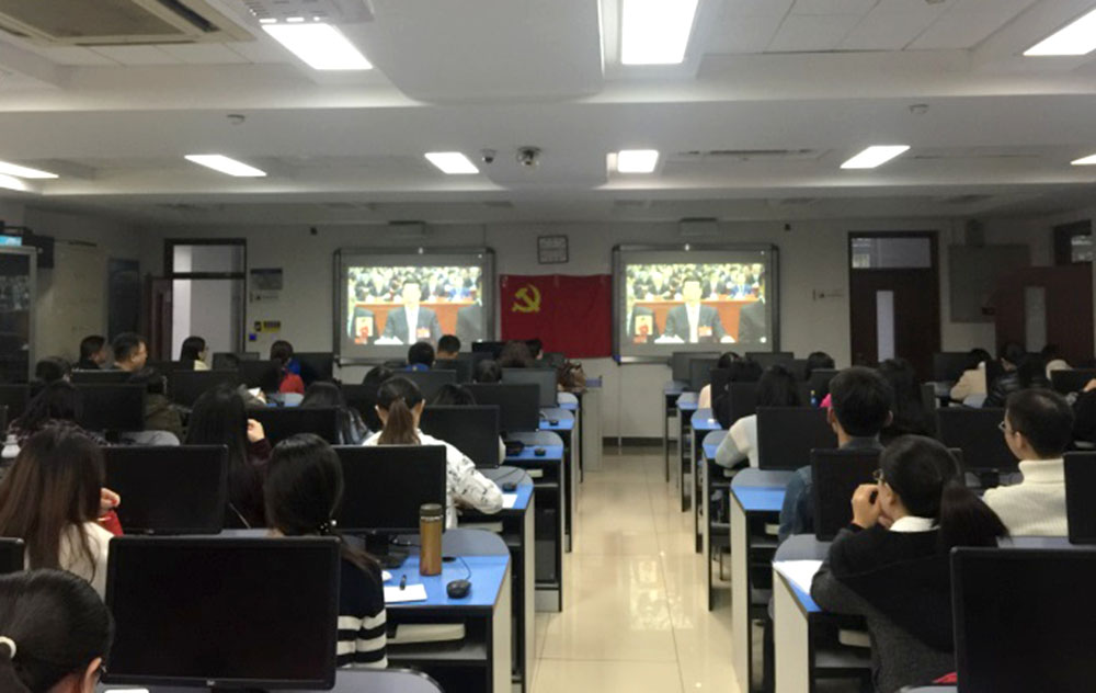 10月18日上午,中国共产党第十九次全国代表大会在北京人民大会堂隆重开幕。会计学院党委组织学院师生党员在行知楼106教室集中收看了十九大开幕盛况,并听取了习近平总书记代表第十八届中央委员会向大会所作的题为《决胜全面建成小康社会 夺取新时代中国特色社会主义伟大胜利》的报告。在观看十九大开幕式直播的过程中,每位党员都在认真听取习总书记的报告,并深刻学习领会关于党和国家发展的新论述和新理念。